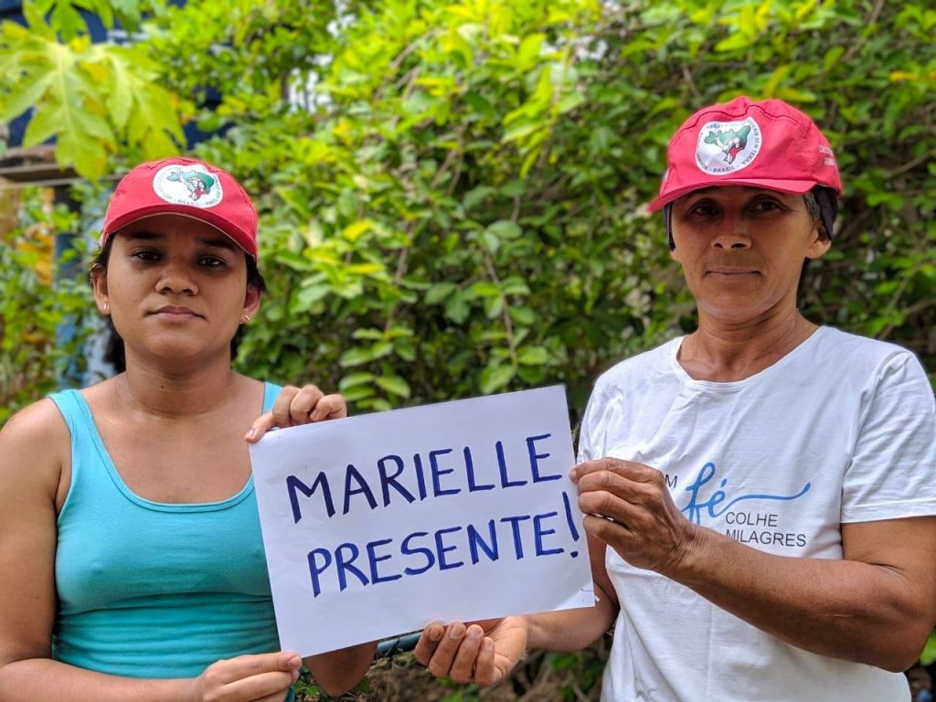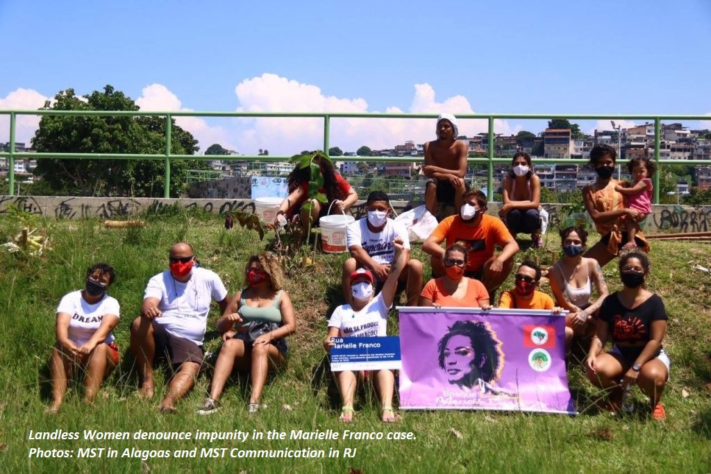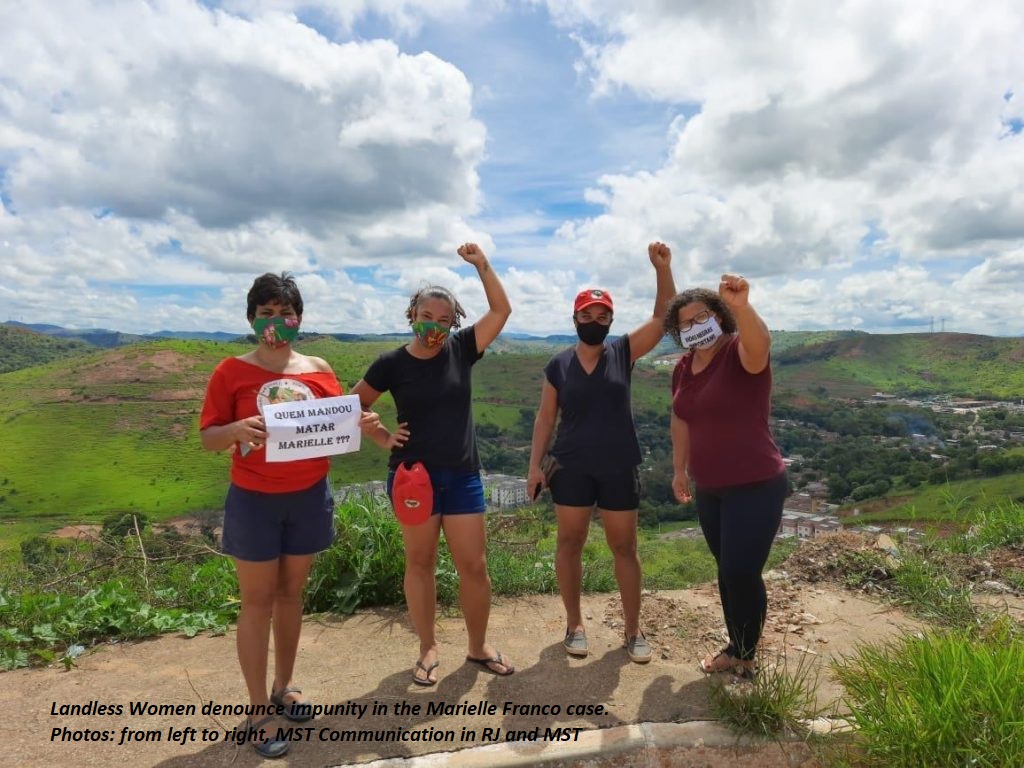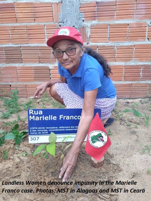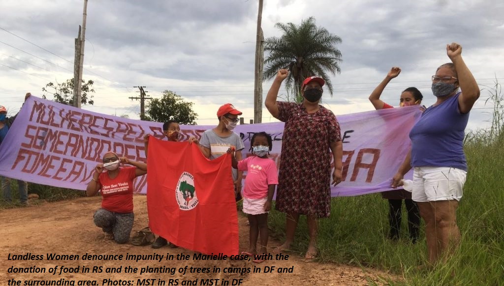 See more images of the MST's Landless Women's Day 2021 at this link: https://mst.org.br/2021/03/15/atos-contra-impunidade-do-caso-marielle-franco-encerram-jornada-de-luta-das-mulheres-sem-terra/