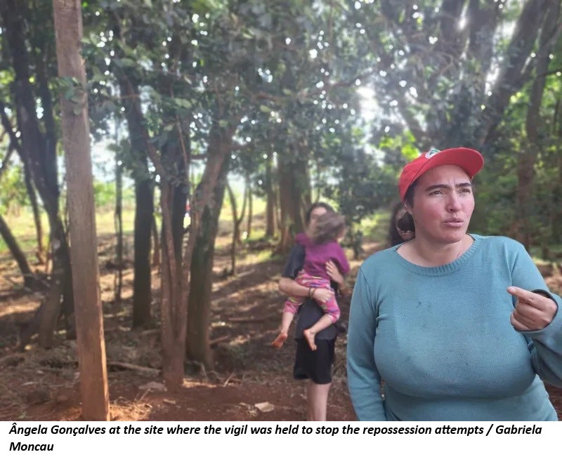 The repossession order was placed on top of the fridge by her brother, Adair Gonçalves. When Angela, the community leader at the time, arrived home, he told her: "There's a piece of paper here. You'd better read it sitting down. You’ll have to be strong, because the [landless] families will expect this from you."