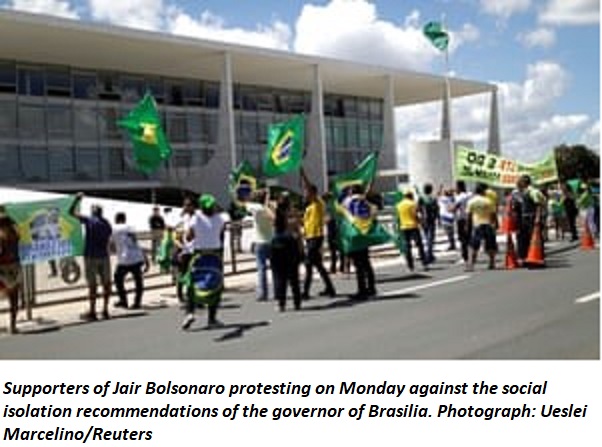 “Brazil and the world are facing an emergency unprecedented in modern history … [and] in our country the emergency is exacerbated by an irresponsible president. Jair Bolsonaro is the greatest obstacle to urgent decisions being taken to reduce the spread of the infection [and] save lives,” said the document, first published in the Folha de São Paulo newspaper.