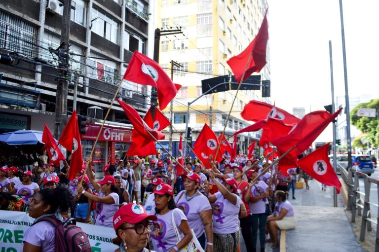 MST women joined social movements and entities in a public act of the 8M in Recife/PE. Photo: Bianka Eduarda and Rebeca Martins