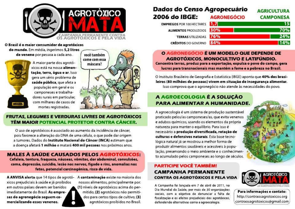 Since 2008, Brazil has become the largest consumer of agrochemicals in the world, and therefore, more than ever, the MST will continue to inform the population and expand its spectrum of struggle against the destructive model of agribusiness, and the union of and the city in defense of the People’s Agrarian Reform.