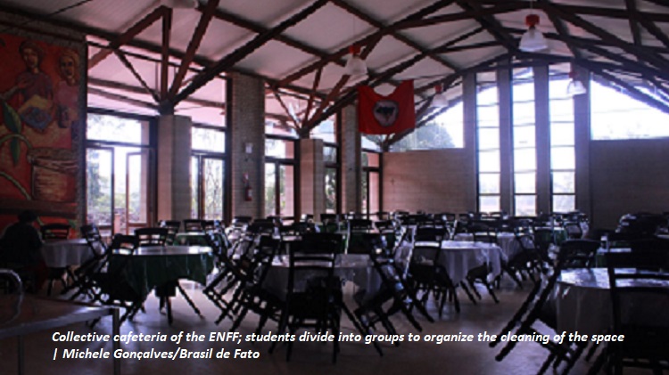 The ENFF, internally, is organized through the Apolônio de Carvalho Brigade, in homage to the Brazilian internationalist, and brings together 50 militants that work and live in the school and rotate after two years.