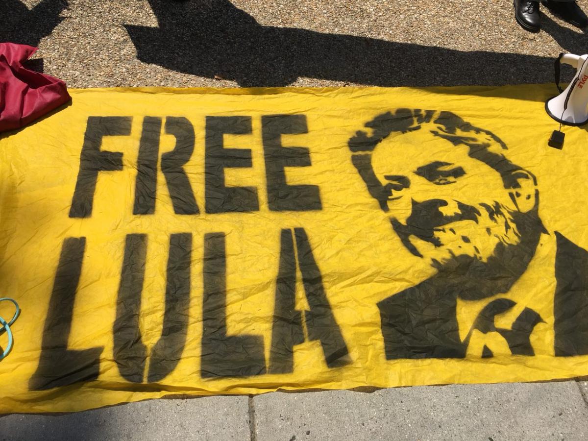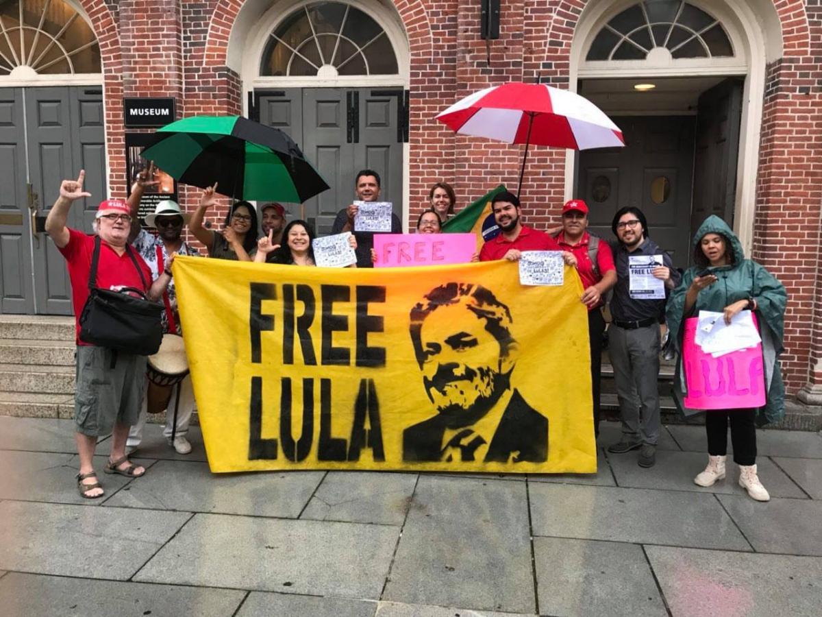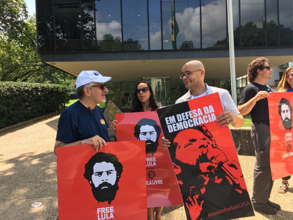 United States: activists from Brazilians for Democracy and Social Justice, trade unionists from the largest trade union federations in the United States and representatives of civil society gathered today in front of the Brazilian Embassy in Washington DC to protest the political imprisonment of former President Lula and ask that be guaranteed their right to be a candidate in the next elections.
