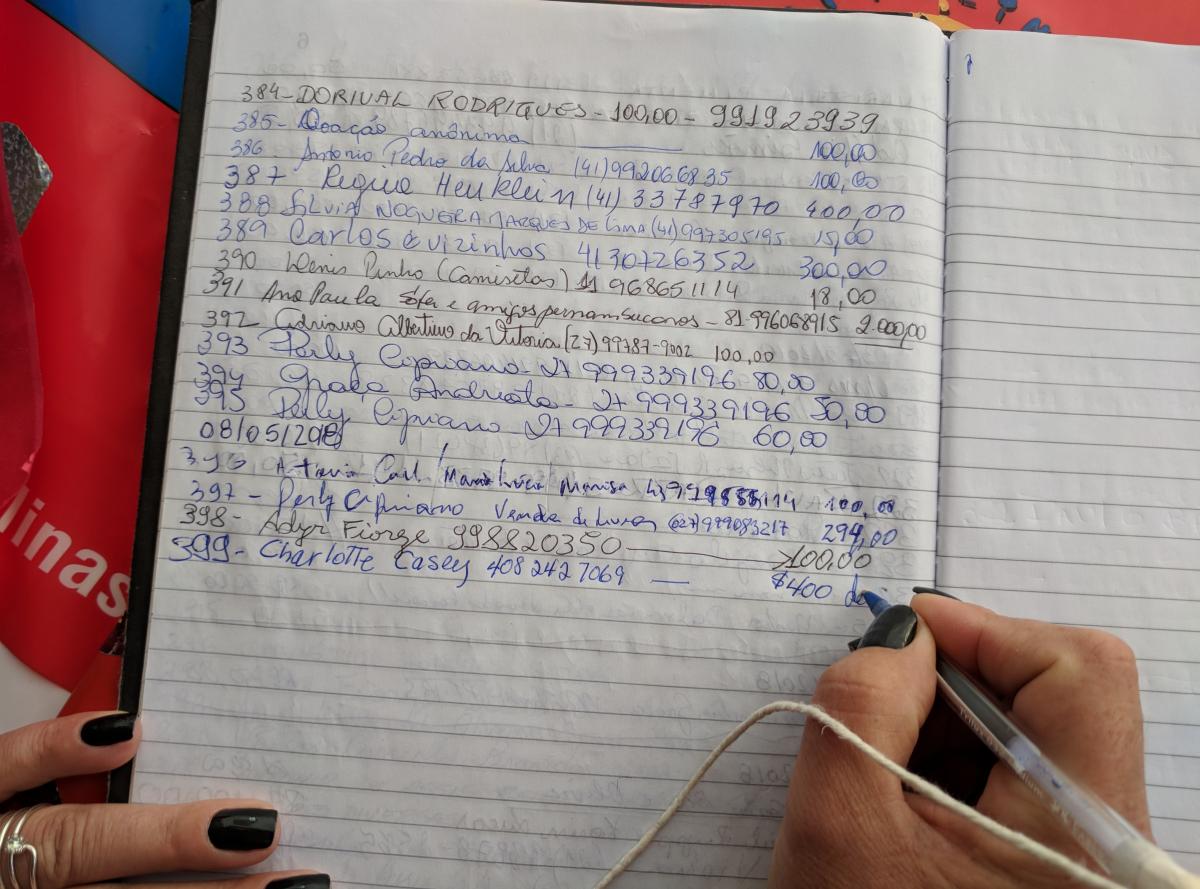 Recording donations to the Free Lula Encampment