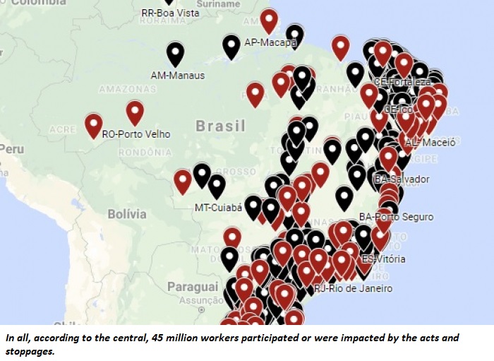 Friday (June 14) was marked by stoppages and street acts; CUT estimates 45 million workers involved