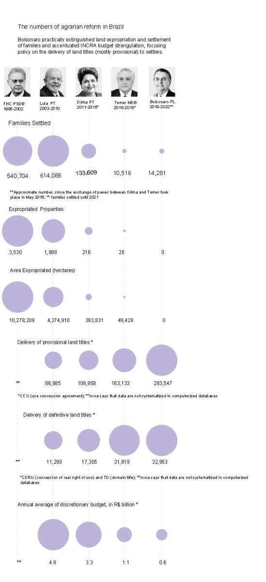 A declared opponent of groups such as the MST (Movimentos dos Trabalhadores Rurais Sem Terra), President Jair Bolsonaro (PL) handed over the management of agrarian reform to the ruralist caucus and intensified a shift initiated by his predecessor, Michel Temer (MDB).