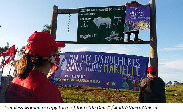 On Wednesday, March 13, over 800 landless women occupied one of the farms of João Teixeira Farias, known as ‘João de Deus,’ who became famous in Brazil and across the world in the 1970s for his services as a so-called medium and “psychic surgeon”. His farm “Dom Inácio,” which is the subject of legal proceedings, is located in Anápolis in the rural region of the Brazilian state of Goiás. The land occupation was carried out as part of the national days of struggle of the Landless Women.