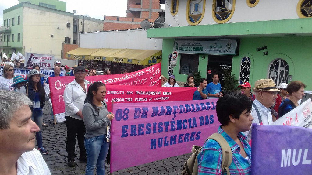 In the morning of this Wednesday (March 8), hundreds of Landless and women members of other popular movements took to the streets in various regions of Santa Catarina. The mobilizations are part of the National Day of Women's Struggles against Social Security Reform and against the withdrawal of rights.