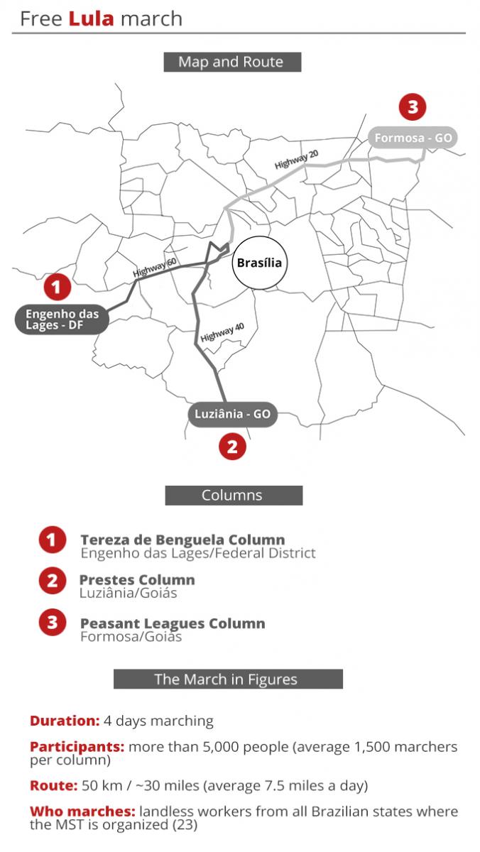 The march will effectively start Saturday, and the three columns should arrive in Brasília on August 14th. On the following day, a massive pro-Lula demonstration will be staged in the capital city of Brazil, as it is the deadline to register candidates with the electoral court, and when the former president will be registered to run in the upcoming elections, in October.