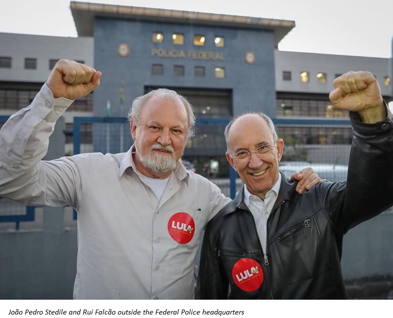 Brazil’s ex-president Luiz Inácio Lula da Silva, who has been held at the Federal Police headquarters since April 7th, received the visit of Rui Falcão, former chair of the Workers’ Party, and João Pedro Stedile, from the National Coordination of Brazil’s Landless Workers' Movement (MST).
