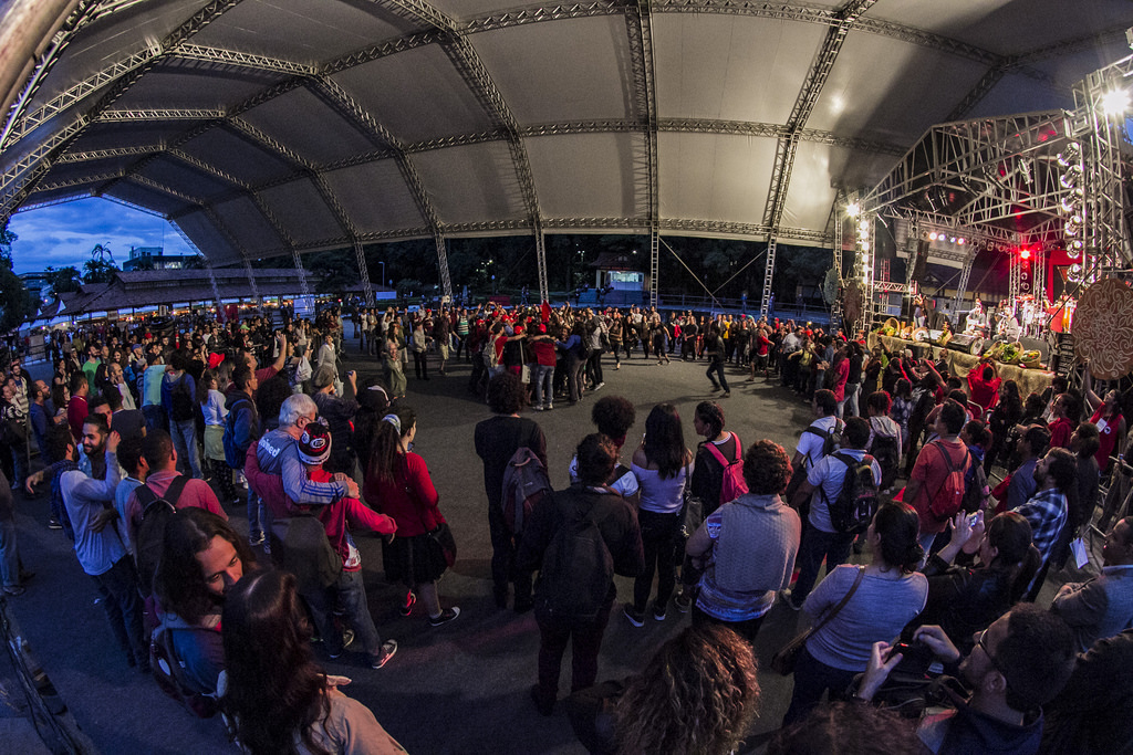 in chorus, repeated several times: "it is a time of war, it is a time without sun," taking the front of the main stage of the National Fair of Agrarian Reform. The intervention served to launch a manifesto against the criminalization of social movements and against violence in the countryside, which was beautiful by the singer Tico Santa Cruz on the night of Friday, May 5, 2017.