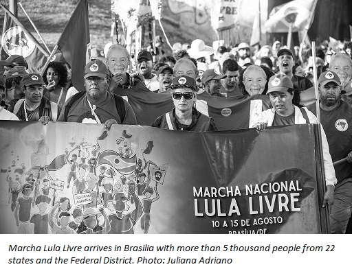 Brazil is experiencing a historic moment. More than 50,000 workers, organized in various popular movements, unions and leftist parties joined the National Free Lula March, organized by the MST, on Wednesday (August 15), to carry out the collective registration of the candidacy of the former president Lula in the Superior Electoral Court (TSE), in Brasília.