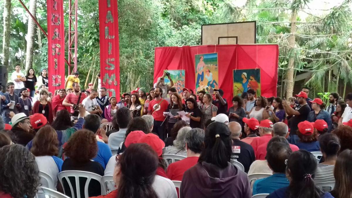 To denounce the criminalization of popular movements, around a thousand people gathered this Saturday, November 5, 2016 at the National School Florestan Fernandes (ENFF), in Guararema (SP), in solidarity with the Movement of Landless Rural Workers (MST). The act is a response to the truculent action of civilian police, who invaded the school, fired bullets at students and militants, and imprisoned two members of ENFF, on Friday, November 4, 2016.