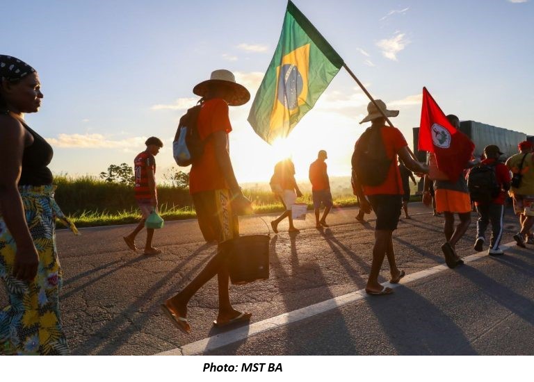 “We fight, because 105 thousand families are camped and we demand that the Federal Government comply with Article 184 of the Federal Constitution, expropriate unproductive large estates and democratize access to land, settling everyone who wants to work and produce food for the people”. And the document continues: “we fight for Agrarian Reform so that the land fulfills its social function: producing healthy food for the Brazilian people and taking care of nature.”
