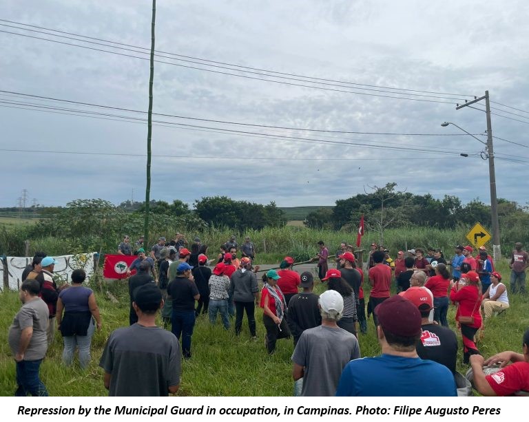 In São Paulo, after the occupation of the Mariana farm, in the municipality of Campinas, the police force repressed the families and evicted the occupation, with indiscriminate use of repressive force. The families headed towards the municipal headquarters to seek negotiation about the situation of the camped families. At this time, the Municipal Guard blocked the entrance to the Municipal Palace, preventing people from entering and leaving.