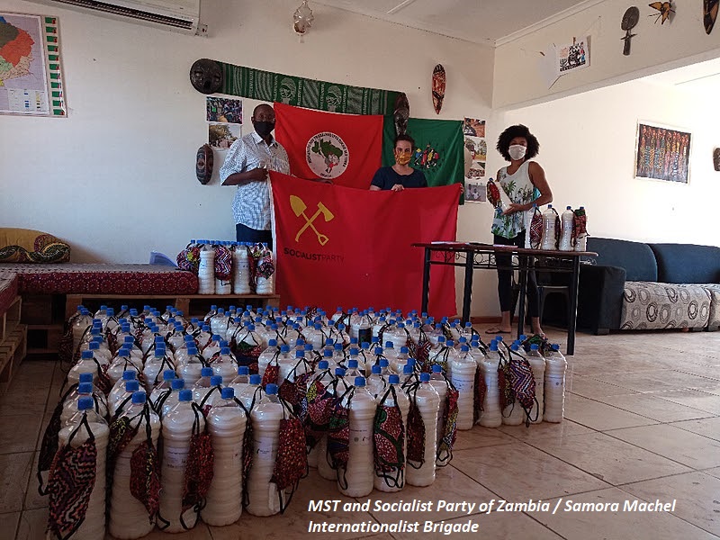 During a heavily militarized quarantine, MST activists work mostly on the distribution of seeds and healthcare equipment, which has been neglected by the local government, as well as on political mobilizations to protect peasants' rights. Last week, the brigade donated 400 liters of hand sanitizer and 400 masks to the Socialist Party of Zambia - the most important progressive force in the country's opposition. The donations will be distributed in the outskirts of the country.