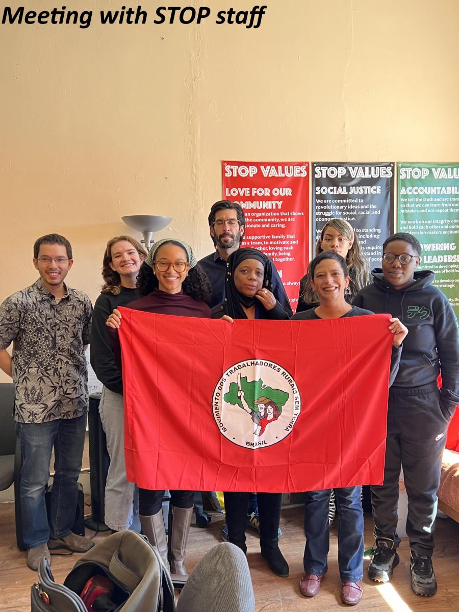 Cassia Bechara met with the Chicago Alliance Against Racist and Political Repression, one of the principal organizations that created the framework for the Community Commission for Public Safety and Accountability, which includes elected councils in each of Chicago’s 22 police districts. Cassia commented that the Left in Brazil has always had difficulty with public security and police brutality. Cassia thought that this initiative in community control of police could be a model for communities throughout Brazil.