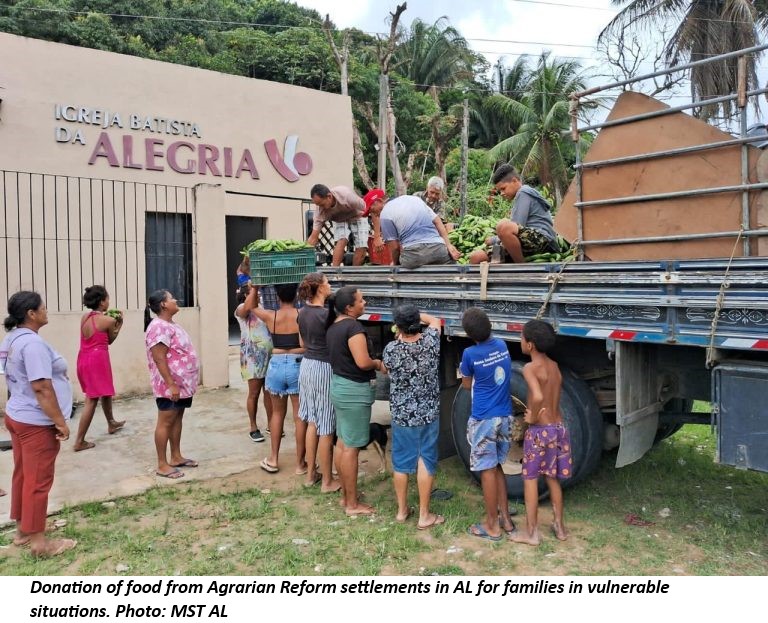 Solidarity is also a central element in the Agrarian Reform project and a principle for the MST, which has also acted to rescue people from public shelters and other locations to Movement spaces, donated hygiene and cleaning materials and sought support for the provision of medical and psychological assistance to affected people and delivery of basic health kits.