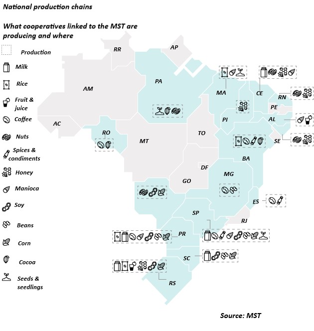 Rice production by the MST ranges from 20,000 to 25,000 tons per year (organic rice was around 15,000 tons this year, due to drought; total rice production by the movement is 45,000 tons).