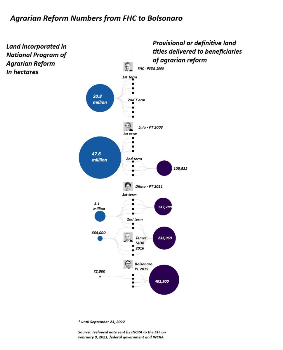 INCRA says it does not monitor invasions of properties or rural properties. According to a report by the Pastoral Land Commission on conflicts in the countryside, 50 land occupations or repossessions were recorded in Brazil in 2021 and three encampments. Almost ten years earlier, in 2012, there were 255 occurrences, and 15 camps. The survey does not detail these occupations by movement or state.