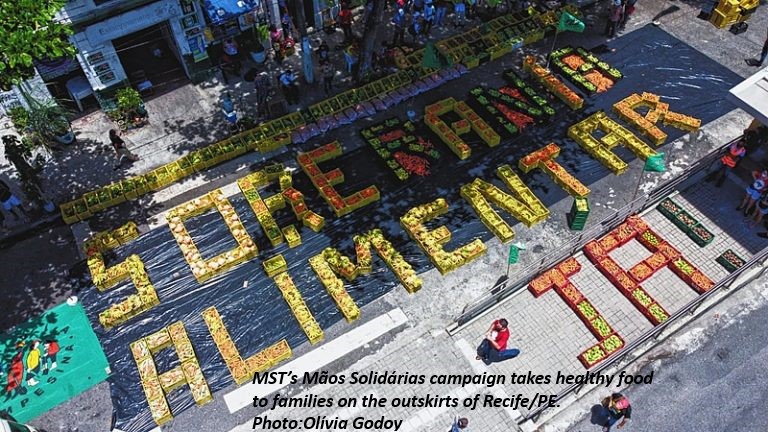 A series of actions were carried out in all five regions of the country, with the participation of Landless workers from the states of Alagoas, Ceará, Pernambuco, Paraíba, Rio Grande do Norte, São Paulo, Espírito Santo, Paraná, Santa Catarina and Rio Grande do Sul and the Federal District. The activities included food donations from Agrarian Reform, production and donation of lunch boxes and meals, debates and online conferences for food sovereignty and against hunger in Brazil, training and seed exchange, tree planting, IV World Meeting of Popular Movements with Pope Francis at the Vatican; occupation of agribusiness and large estate company headquarters, Agrarian Reform fairs; inauguration of solidarity recyclable material sheds in partnership with urban social movements; among other activities.