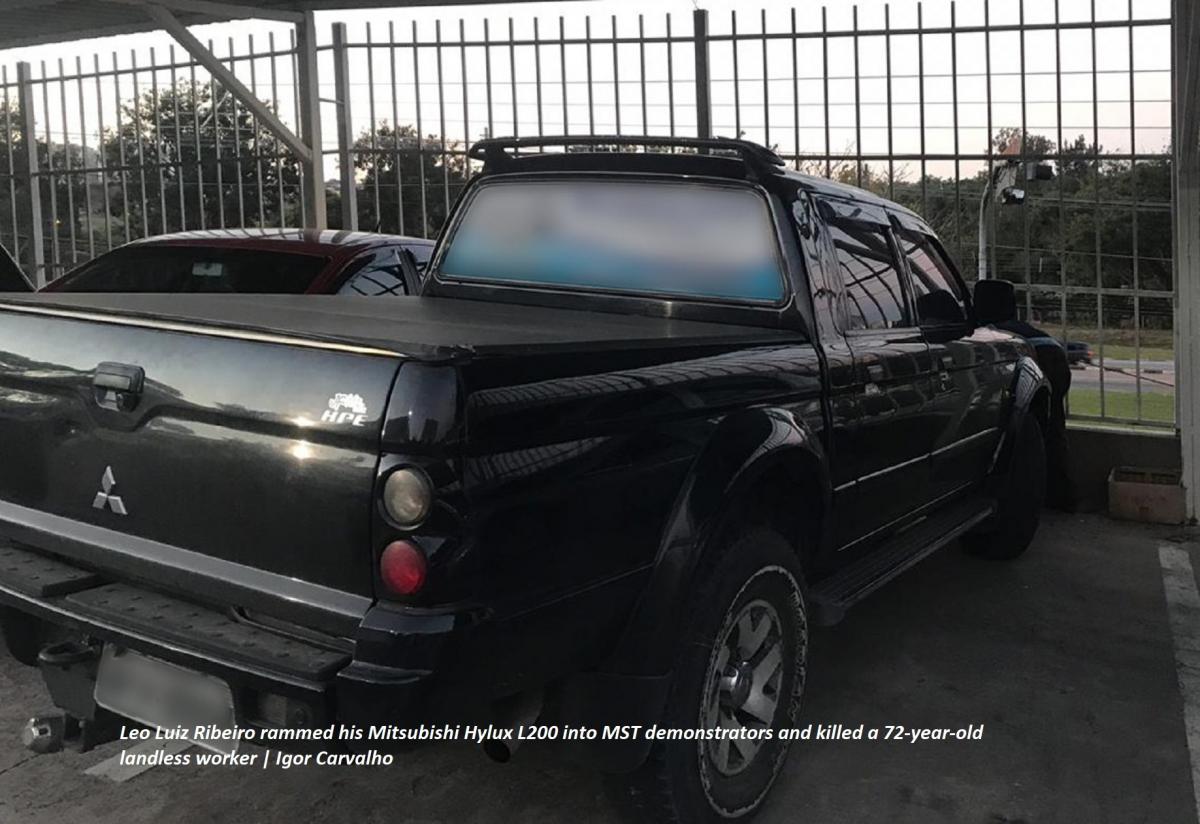 Leo Luiz Ribeiro owns a car shop where he works with his two brothers. On Thursday morning, while he was driving on the road and passed by a protest staged by the MST, he deliberately rammed his Mitsubishi Hylux L200 into the landless demonstrators. The police seized the truck, which had a Brazilian flag on the car panel – a symbol that has been increasingly used by right-wing, nationalist groups.