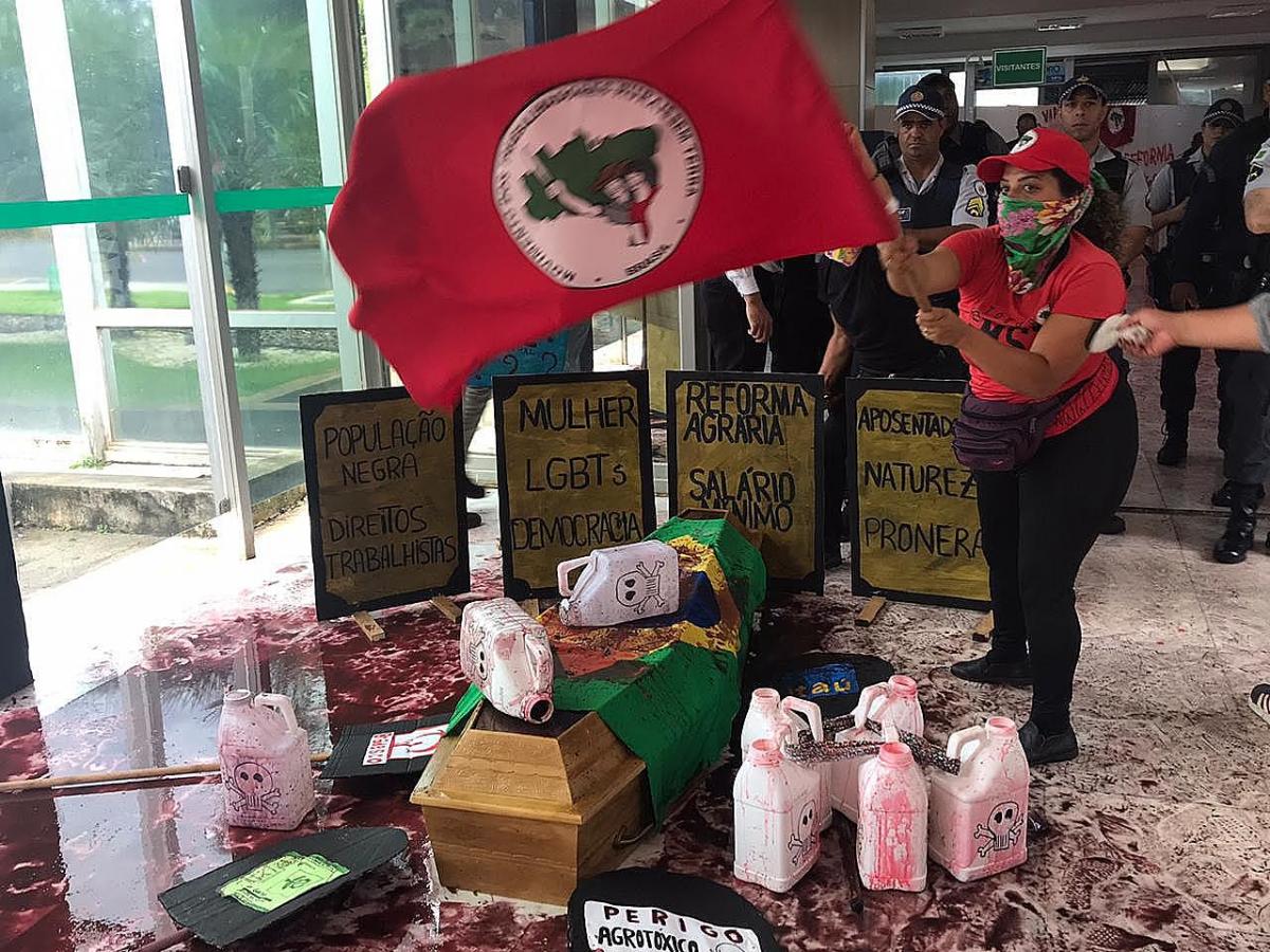 Deputies wearing MST caps during the Parliamentary Commission of Inquiry (CPI) on the MST