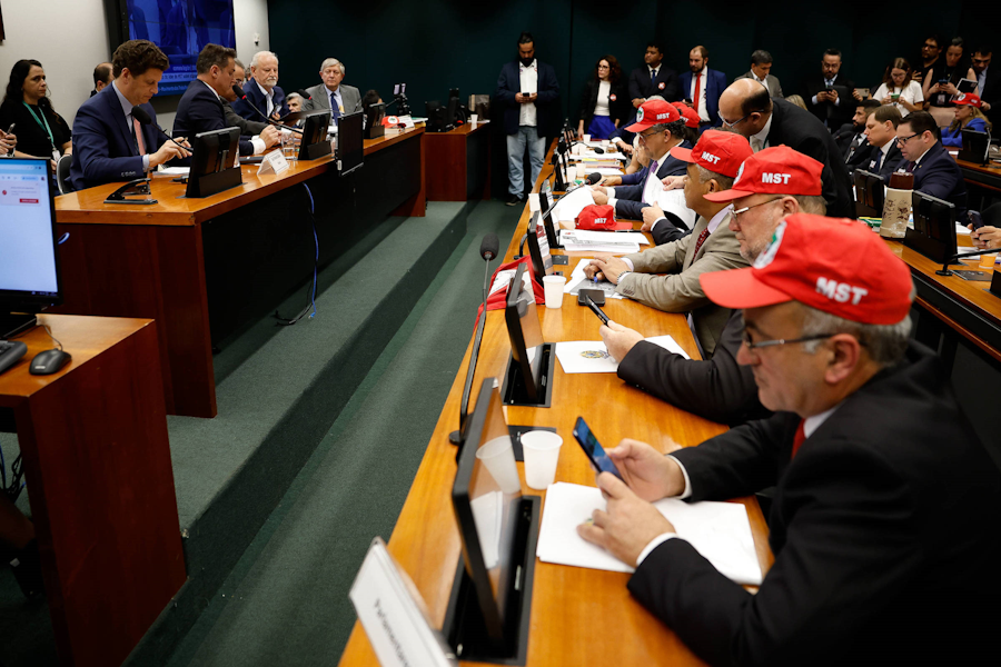 Deputies wearing MST caps during the Parliamentary Commission of Inquiry (CPI) on the MST