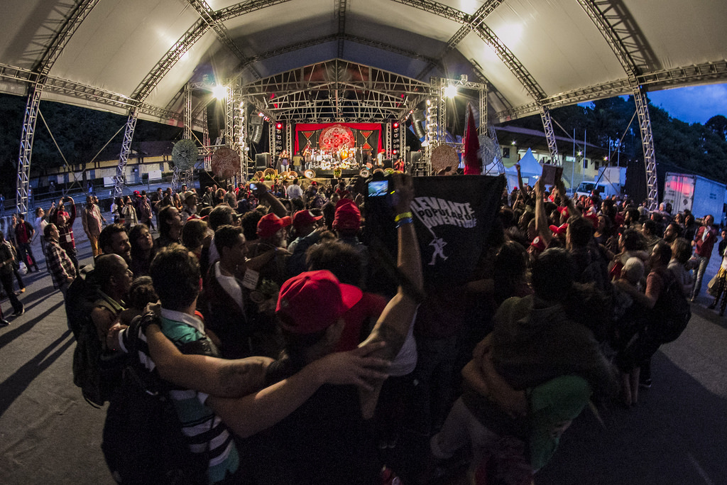 in chorus, repeated several times: "it is a time of war, it is a time without sun," taking the front of the main stage of the National Fair of Agrarian Reform. The intervention served to launch a manifesto against the criminalization of social movements and against violence in the countryside, which was beautiful by the singer Tico Santa Cruz on the night of Friday, May 5, 2017.