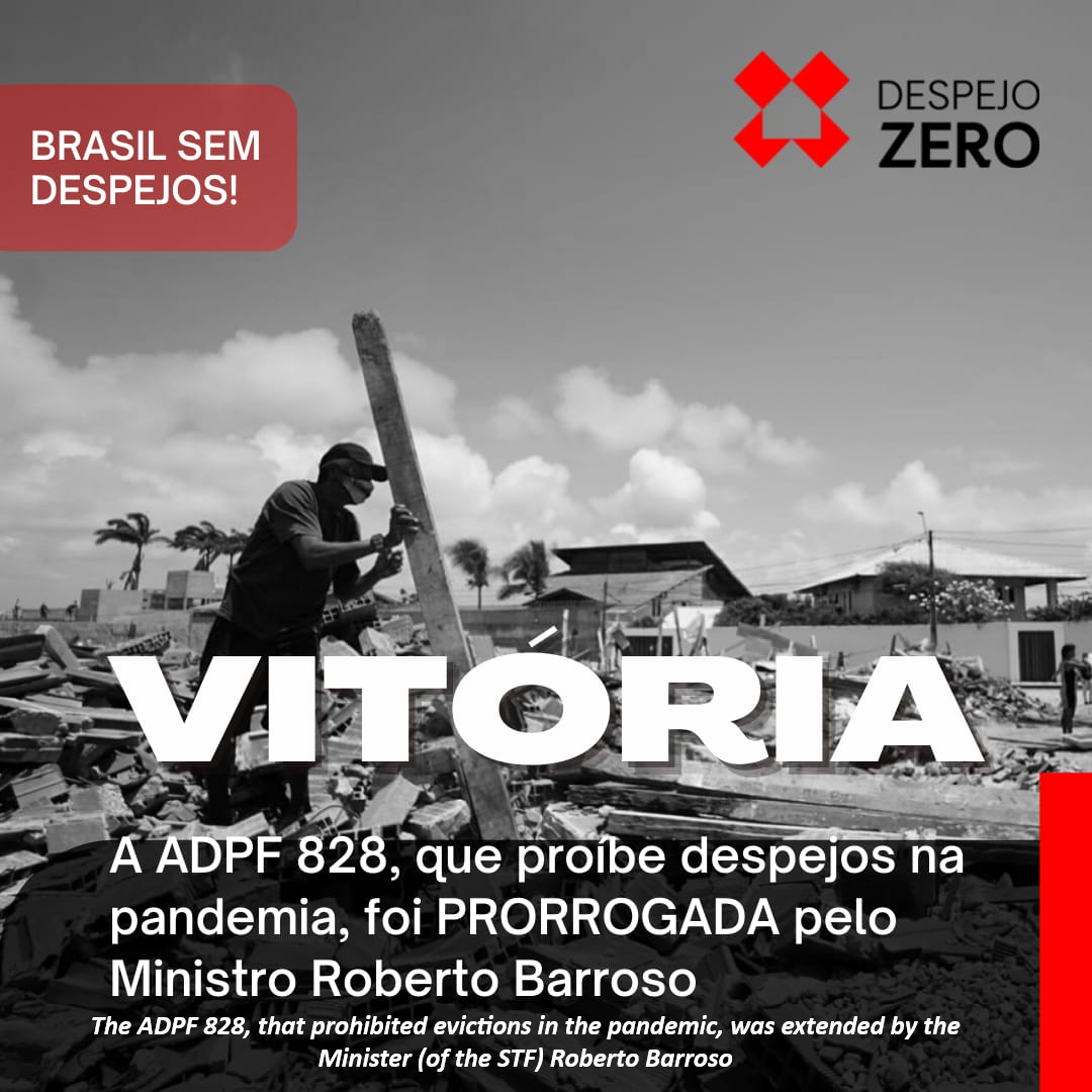 After national mobilization, a union of popular movements managed with the STF to extend ADPF 828, which prevents evictions until June 2022