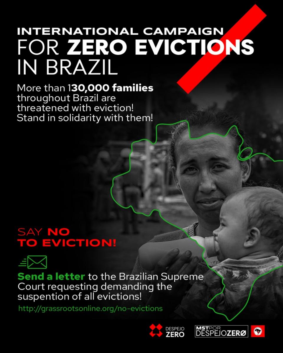 On March 31, the moratorium on evictions put in place during the pandemic will expire in Brazil. The Landless Workers Movement (MST) has identified 200 encampments and pre-settlement areas that are subject to eviction orders. Quilombolas, Indigenous areas and scores of urban tenants also face eviction.