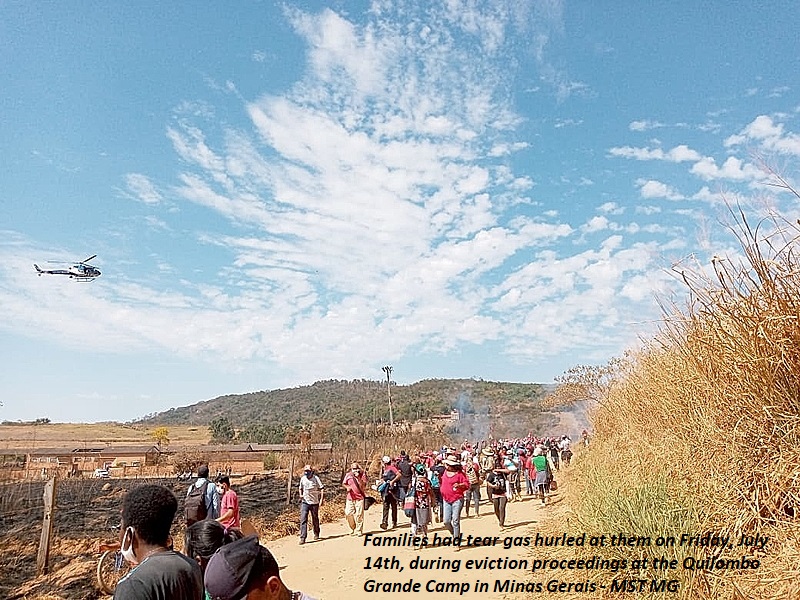 The 450 landless families have been resisting the eviction for more than 30 hours in the state of Minas Gerais