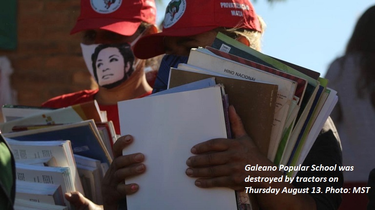 On Thursday morning, August 13, tractors brought down the structure of the Eduardo Galeano Popular School